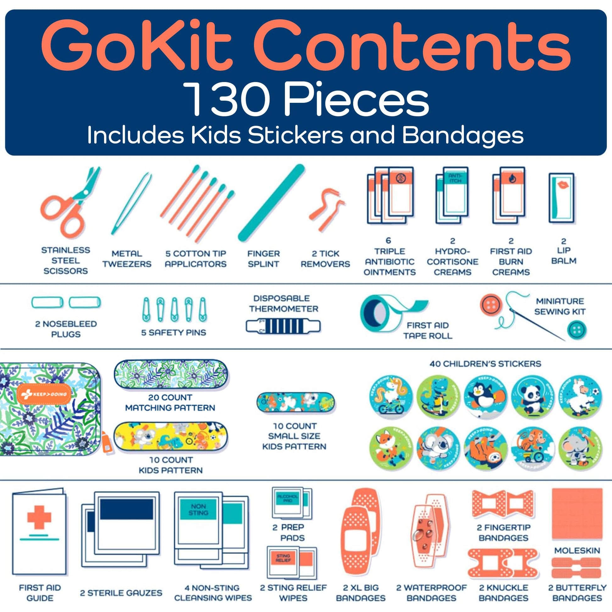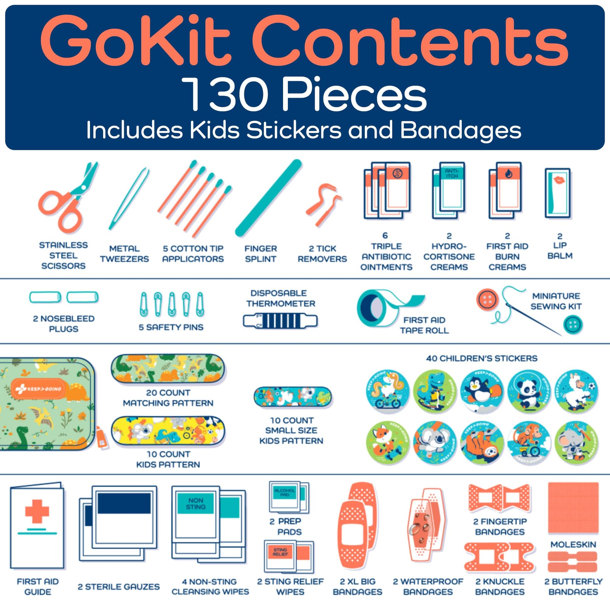 KeepGoing Travel First Aid Kit for Kids – 130 Pc. for Car, Home, Purse, Diaper Bag & Backpack with Latex-Free Bandages - Mini First Aid Kit Travel Size TSA-Approved