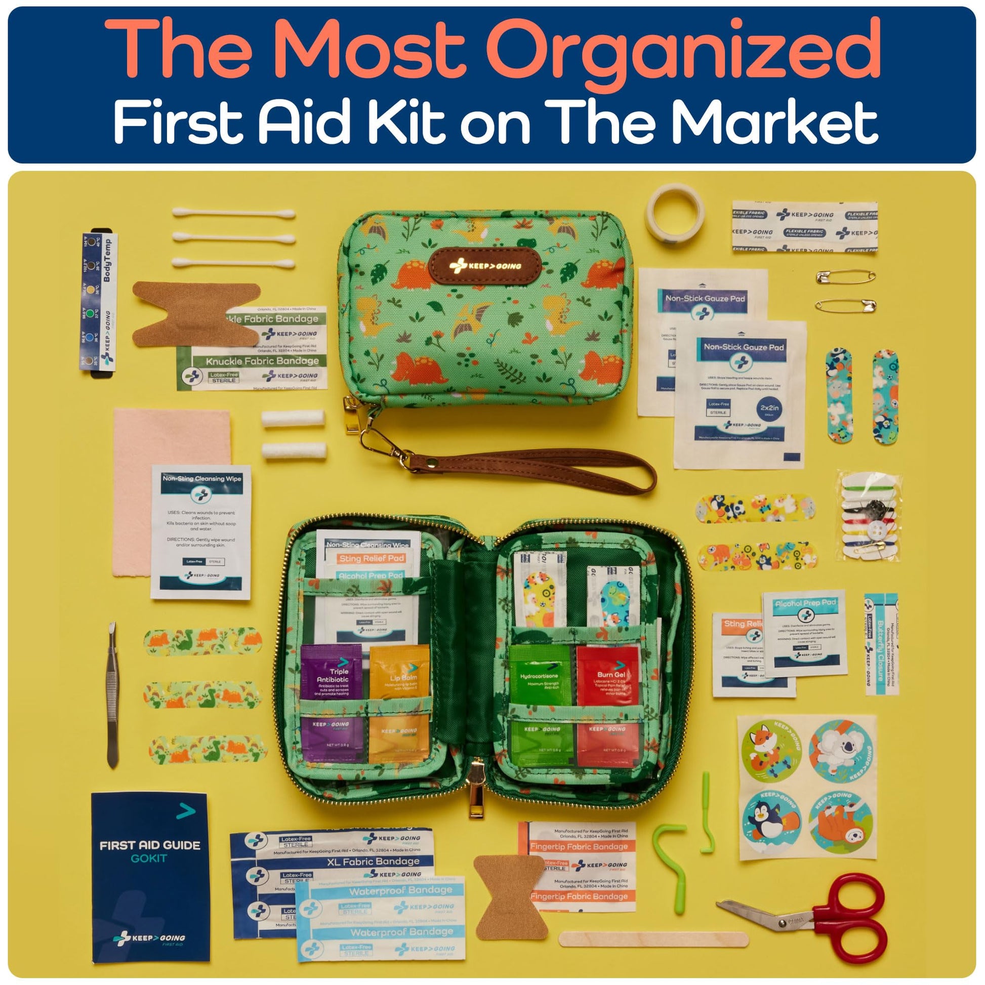 - For Your Family – The average med kit is designed just for adults, but your KEEP>GOING kit works perfectly as a baby first aid kit and beyond. Bandage their boo-boos and put smiles back on their faces!