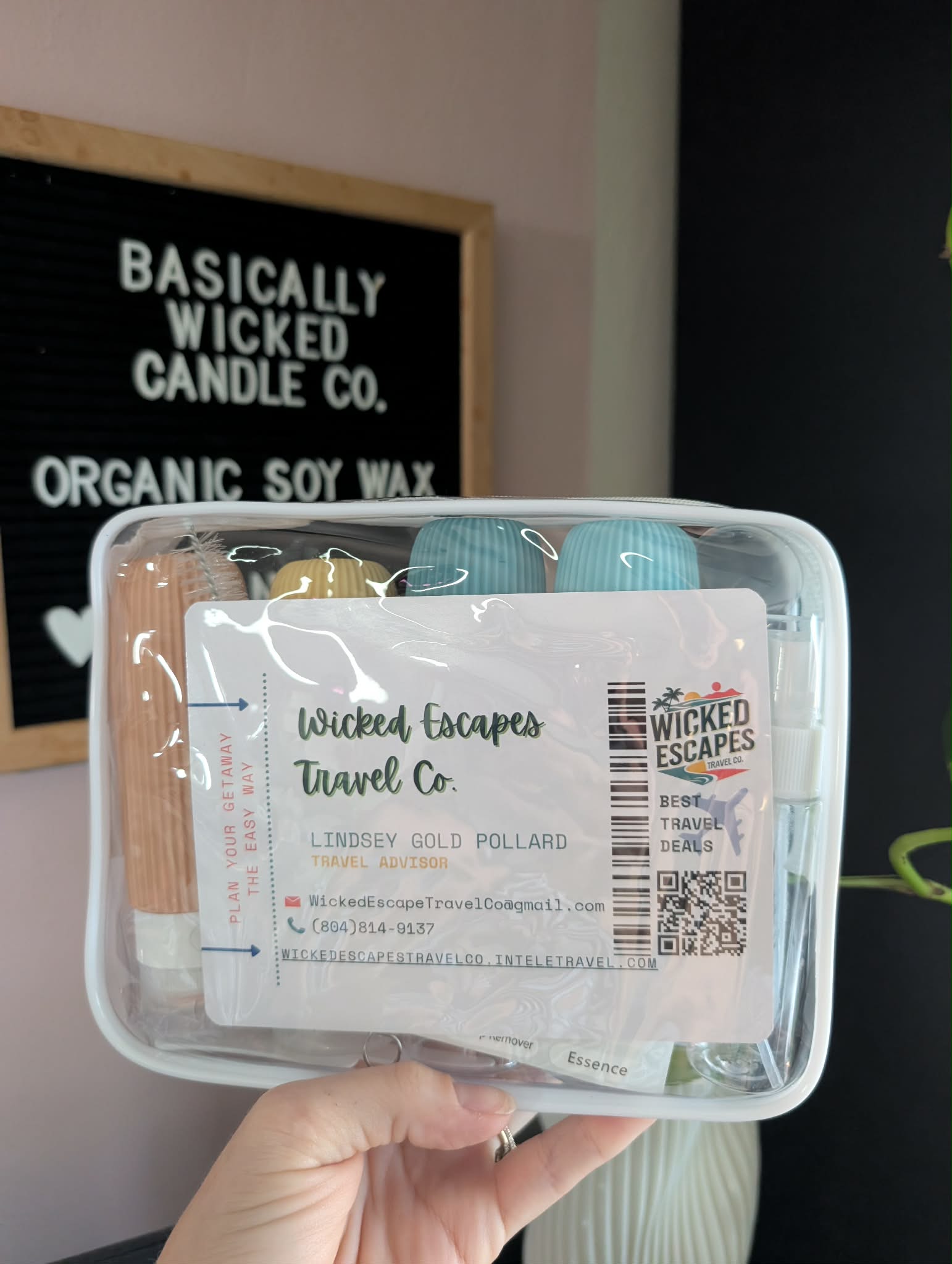 Curated by Basically Wicked Candle Co., this comprehensive travel toiletries bag keeps your essentials organized and TSA-compliant.